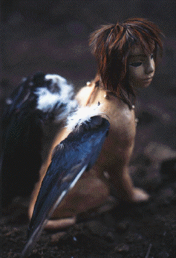 素材:木粘土、油彩、羽毛