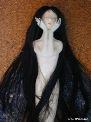 素材:石塑、胡粉、油彩、ナイロンヘア、和紙、 H30cm 2004