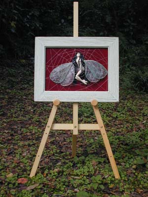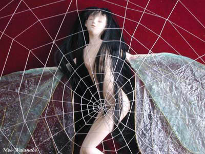 前にも蜘蛛を題材にした作品を作った事がありますが、蜘蛛の巣に捕らえられた蝶の精と言う設定です。