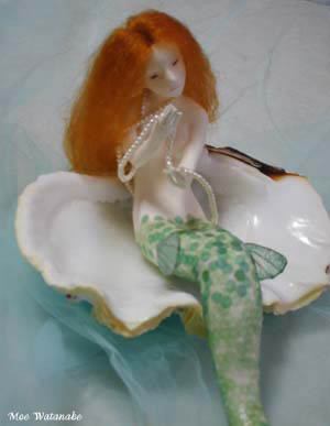 シャコ貝のソファーでくつろいでる感じに。