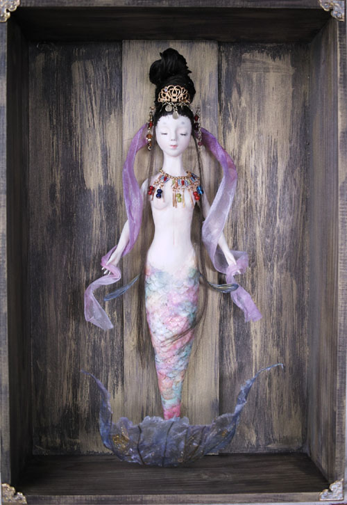人魚を作っているうちに、髪型を盛り上げたら観音様のように見えてきたので、そんな仕上げにしてみました